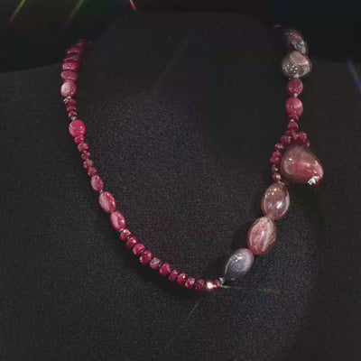 This piece is a mixture of faceted rondelle and smooth amorphous ruby This lariat has a total length of 16"